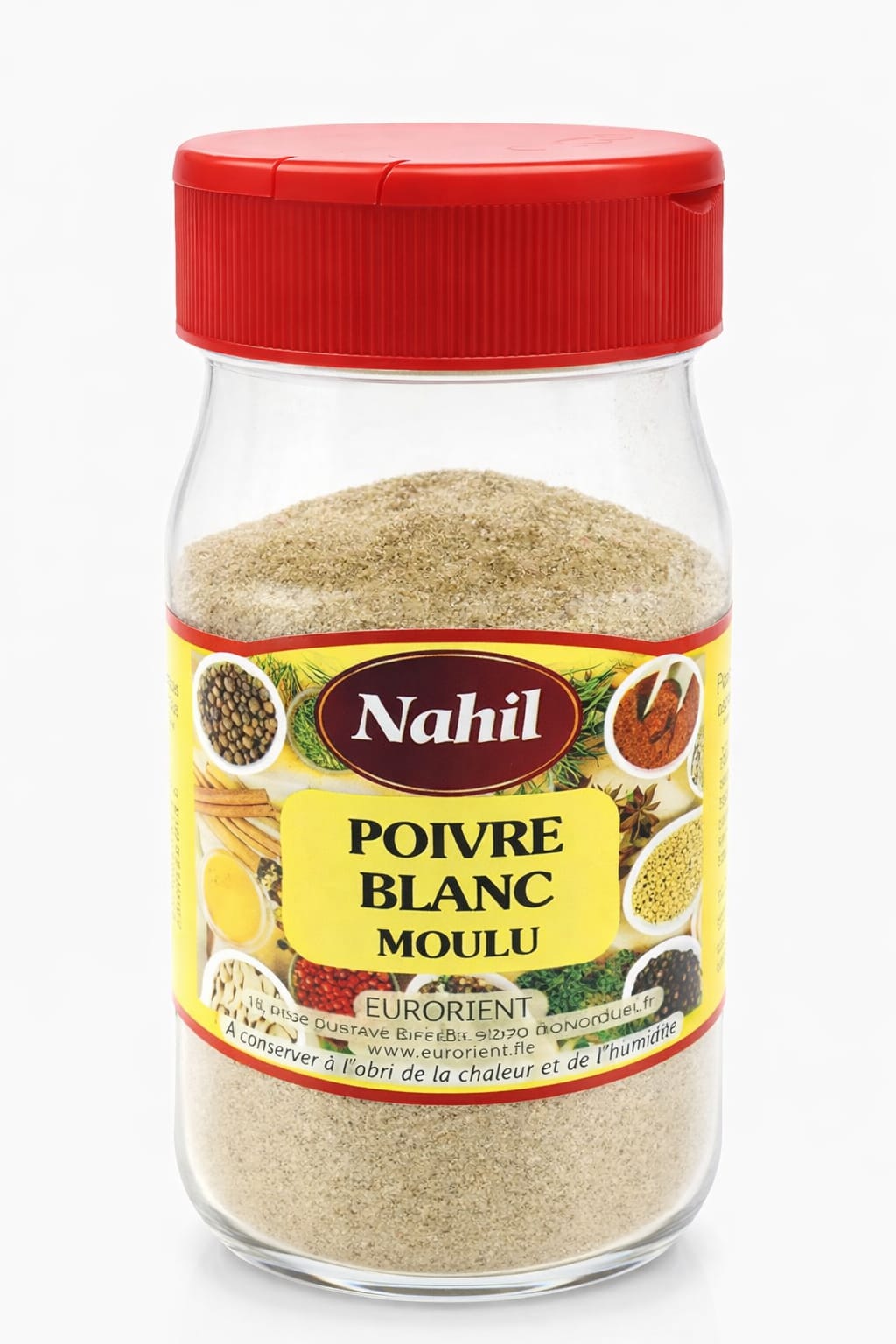 Accueil Epices FLACONS Nahil ..BOCAL POIVRE BLANC MOULU FLACON 130 g x 20 *NAHIL* = 10 + 1-DLV 09/27 ou